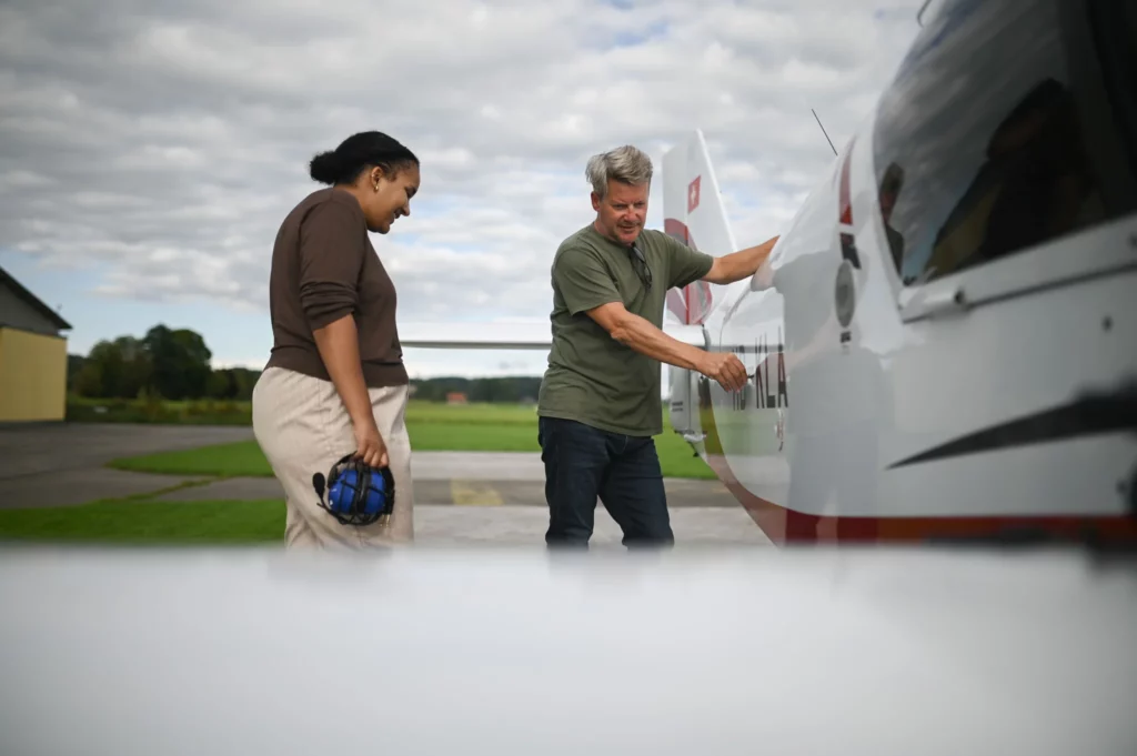 Als mich André Heinzelmann, Fluglehrer und Vereinspräsident der Motorfluggruppe Thurgau, nach einem Telefon-Interview auf einen Schnupperflug eingeladen hat, war mein Instinkt, abzulehnen. Doch er meinte, ich müsse mich nicht sofort entscheiden. Ich legte auf und war etwas perplex. Und neugierig. So eine Chance erhalte ich kein zweites Mal. Ich wäre blöd, das nicht zu machen.