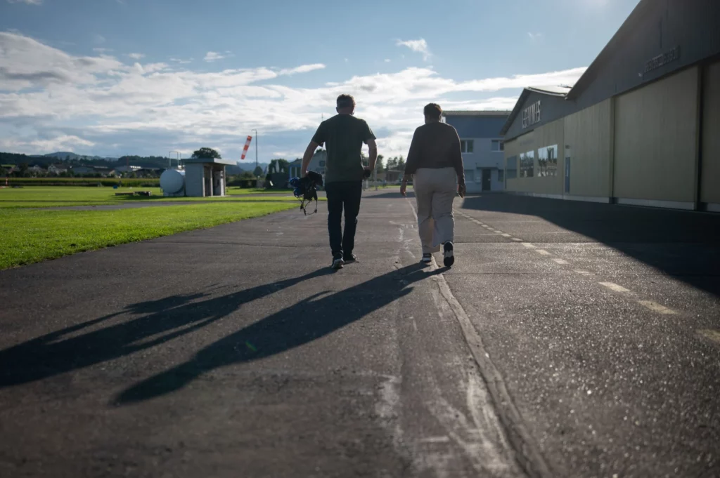Heinzelmann begrüsst mich im Restaurant des Flugplatzes. Er bietet mir einen Kaffee an, doch das scheint keine gute Idee. Milch und Koffein mischen sich nicht gut mit dem Kribbeln in meinem Magen.