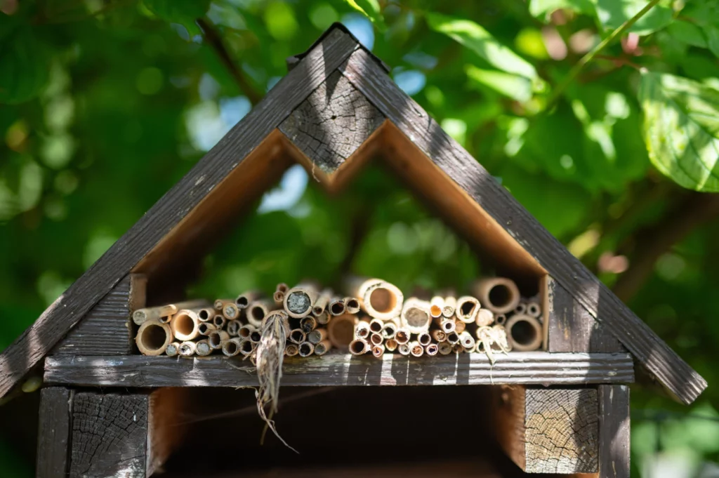 Der Insektenkenner pflegt sein Wildbienenhotel regelmässig, um möglichst vielen fliegenden Tierchen ein Zuhause zu bieten.