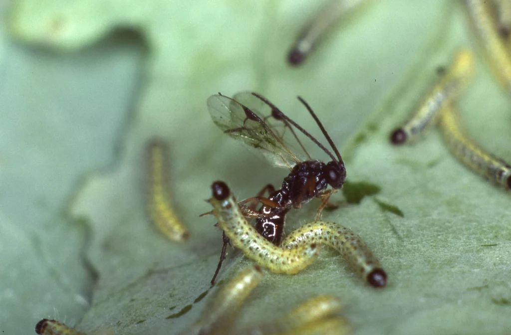 In seinem Buch präsentiert Keller seine Fotografien. Wie hier von einer Schlupfwespe, die eine junge Kohlweisslingsraupe parasitiert. (Bild: ETH Bildarchiv)