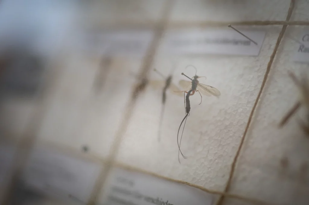 Die Darwin-Wespe gehört zu den grössten Schlupfwespen. Viele Arten sind aber haarklein und von blossem Auge nur schwer zu erkennen.